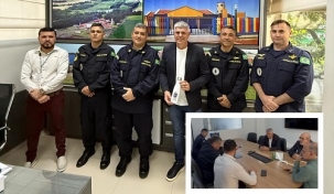 Representantes da Marinha do Brasil visitaram Campo Mourão nesta terça-feira. Estiveram na prefeitura reunidos com o coordenador geral Chico Pequito, com o secretário da Cultura, Roberto Cardoso, com o chefe da 8ª Ciretran, Leandro Cristiano, e com o vereador Edilson Martins. Em pauta, a instalação de um Posto de Atendimento na cidade em parceira com o Detran e uma apresentação, no aniversário do município, em outubro, no Teatro Municipal, da Banda do Corpo de Fuzileiros Navais.