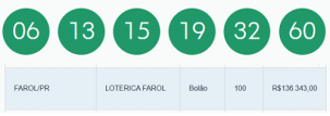 A Mega Sena sorteou neste sábado prêmio acumulado em R$ 31 milhões, mas ninguém acertou as seis dezenas. Assim, a premiação deve chegar a R$ 40 milhões no próximo sorteio. A quina teve 96 apostas ganhadoras, sendo sete do Paraná. Uma delas foi feita na lotérica Farol, em Farol. Foi um bolão de 100 cotas que faturou R$ 136,3 mil.