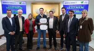O governador Ratinho Jr anunciou nesta terça-feira o investimento de R$ 49,3 milhões para asfaltar vias de 10 cidades, através do programa “Asfalto Novo, Vida Nova”. Uma delas é Barbosa Ferraz, que vai receber R$ 7,4 milhões para pavimentação e iluminação de ruas. O prefeito Carlos Caxão recebeu a autorização das mãos do governador. O secretário de Estado Márcio Nunes (Agricultura) também participou.