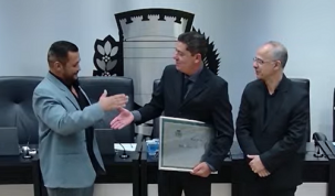 O tenente-coronel Willian Dieimes Silveira recebeu nesta quarta-feira o título de Mérito Militar. A entrega foi feita pelo vereador autor da homenagem, Subtenente Macedo, e pelo coordenador geral da prefeitura, Francisco Pequito, em sessão solene da Câmara de Campo Mourão. Cinco vereadores estavam presentes. Willian foi comandante do 11º BPM e, atualmente, é diretor de Assuntos de Governo na prefeitura.