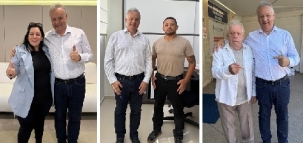 Em pré-campanha para deputado estadual, o agora ex-prefeito de Ubiratã, Fábio D’Alécio, esteve em Campo Mourão. No roteiro, contato com lideranças da cidade, falando da sua viabilidade. Ele conversou, entre outros, com os vereadores Eliane do Café e Subtenente Macedo e o médico Francisco Claudino.