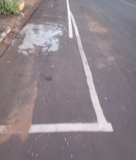 Alguma coisa deu errado na pintura da sinalização na rua Peabiru, em Campo Mourão.