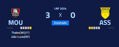 Campo Mourão venceu neste sábado o Assoeva/RS, pela Liga Nacional de Futsal, por 3 a 0.