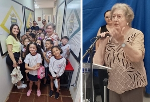 A autora do hino de Campo Mourão, professora Walkyria Gaertner Boz, lançou nesta quinta-feira à noite, na Biblioteca Municipal, o livro de memórias “Folhas do Outono”. Pela manhã, ela visitou o Museu Municipal e se emocionou ao ouvir a primeira versão do hino, composto em 1967 para as celebrações do 20º aniversário da cidade. A gravação pode ser ouvida por todos que visitam o museu. Walkyrira está com 86 anos e mora atualmente em Curitiba. O hino foi feito em parceria com o professor Egydio Martello.