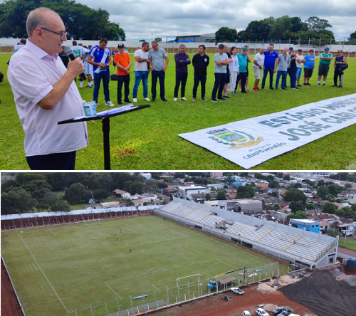 A prefeitura de Campo Mourão inaugurou neste domingo o novo estádio municipal José Carlos Galbier. É o conhecido “Estádio dos Amadores”, que ganhou arquibancada para 4 mil pessoas. O investimento foi de R$ 4 milhões. A cobertura da arquibancada e a iluminação já estão licitadas. O local vai receber, em 2025, os jogos do Nacional (2ª divisão) e do Sport (3ª divisão).