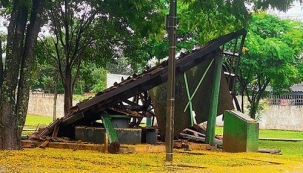 Na pracinha do Parigot, o local onde o pessoal costumava se reunir para conversar ou jogar baralho desabou. Por sorte, ninguém se feriu.
