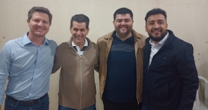 Na foto, Santin Roveda e o deputado Adriano José com o prefeito e vice-prefeito eleito de Araruna, Gustavo França e Cido Della Riva.