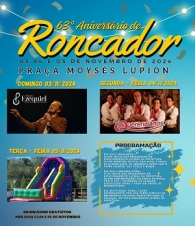 Roncador – Acontece de 3 a 5 de novembro a comemoração pelos 63 anos do município. Inclui shows com o padre Ezequel e o grupo Os Querencianos. Para as crianças haverá brinquedos infláveis.