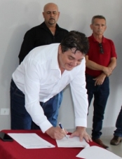 Oclecio Meneses, prefeito de Farol, criticando quem defende intervenção na Santa Casa de Campo Mourao. Ele disse que acredita da nova diretoria e que quem assumiu há 60 dias não pode ser responsabilizado por uma divida de R$ 60 milhões; sábado, ao assinar convênio de cooperação que repassou R$ 1,5 milhão para o hospital.