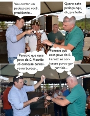 Barbosa Ferraz é a terra do "porco garantjdo" e, Campo Mourão, do carneiro no buraco. Durante evento em São Pedro do Ivaí, no entanto, o prefeito Edenilson Miliossi (Barbosa Ferraz) e o presidente da Câmara Edilson Martins (Campo Mourão) mostrarm que não perdem a chance de um carneirinho na brasa...