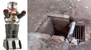 O Robô alerta: está perigoso para o pedestre passar pela rua Piquirivaí, esquina com a João Vecchi, no Lar Paraná.