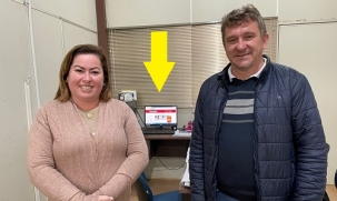 A embaixatriz da Ucrânia, Fabiana Tronenko, visitou a região esta semana. Esteve em Roncador e em Campo Mourão. A agenda incluiu um encontro com o presidente da Câmara roncadorense, Jenauro Hruba, que é descendente de ucranianos. E cá pra nós: é impressão ou a embaixatriz flagrou Hruba acessando a Boca Santa?...