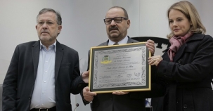 A Câmara de Campo Mouão fez sessão solene nesta quinta-feira para entregar o título de Cidadania Honorária ao médico cardiologista Paulo Sérgio Bezerra da Silva. A entrega foi feita pela autora, Naiany Salvadori e pelo prefeito Tauillo Tezelli. Silva é de Curitiba e foi diretor do Hospital Evangélico.