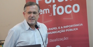 Tauillo Tezelli (Cidadania), prefeito de Campo Mourão, sobre os municípios estarem reféns dos órgãos de controle e afirmar que a comunicação aproxima o poder público da população e mostra transparência dos atos de uma gestão; darante worshop sobre comunicação pública promovido pela Comcam.