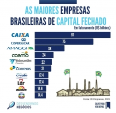 Você sabe quais são as maiores empresas de capital fechado do Brasil? A Caixa é a líder, com faturamento de R$ 97 bilhões. Em segundo vem a Copersucar (R$75 bilhões), e em terceiro a Amaggi (R$ 38 bilhões). Já a quarta colocada é uma velha conhecida de Campo Mourão. Sim, a Coamo aparece no "top five" com seus R$ 24 bilhões. Deixou pra trás empresas como Votorantin, Correios e até uma tal de Rede Globo.