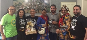 1) Terminou nesta sexta-feira o 15° Festival Folclórico de Quinta do Sol, que reuniu 10 grupos de cinco estados. No último dia, representantes dos grupos visitaram o prefeito Leonardo Romero.