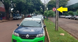 Até carro de prefeitura da região continua estacionando em Campo Mourão junto ao canteiro central em trechos de avenidas em que isso não é mais permitido.