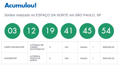Ninguém acertou as seis dezenas sorteadas nesta quarta-feira pela Mega-Sena. Assim, ninguém ficou com os R$ 40 milhões e o prêmio deve chegar a R$ 50 milhões no próximo sorteio. Na região, duas apostas passaram raspando. Acertaram cinco dos seis números. Uma feita em Campo Mourão e outra em Goioerê. Cada uma leva para casa R$ 38,8 mil. Ao todo, 97 apostas fizeram a quina.