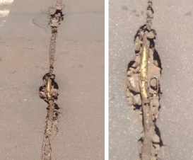 Fiação da iluminação exposta no asfalto. Esquina da av. Capitão Índio Bandeira com a rua São Paulo.