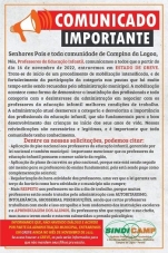 Um "comunicado" informa que, se não houver diálogo, uma paralisação pode ser iniciada ainda este mês.