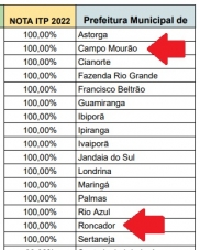 Dezesseis municípios alcançaram nota máxima, sendo dois da região - Campo Mourão e Roncador.