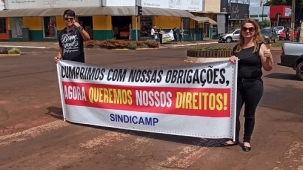 A terça-feira foi dia de paralisação de professores da educação infantil de Campina da Lagoa. Eles pressionam a prefeitura a pagar o piso do magistério, entre outras reivindicações. Um grupo de professores foi para o centro da cidade e levou faixas e cartazes. À tarde foi à sessão da Câmara. A categoria quer ser recebida pela administração e não descarta greve para os próximos dias.