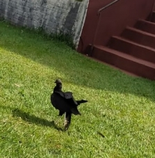 Urubu com a asa quebrada na rua Santa Catarina, perto do Parque do Lago de Campo Mourão.