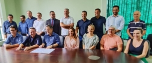 Teve prefeito, vice-prefeita, deputado estadual, sete vereadores e três ex-vereadores nesta quinta-feita na prefeitura de Campo Mourão. Foi na cerimônia de assinatura da ordem de serviço da pavimentação dua rua que dá acesso à futura nova sede do Cis-Comcam. Fica perto da Santa Casa. O asfalto vai custar R$ 694,6 mil. Já a construção do chamado AME ainda será licitada e está estimada em R$ 25 milhões.