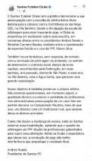 "Como não houve a mudança da escala, cabe ao Santos externar essa insatisfação", destaca postagem do clube.