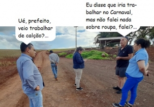 O clic é de Campina da Lagoa, nesta terça-feira. O prefeito MIlton Luiz Alves, de fato, cumpriu expediente no Carnaval. À tarde, por exemplo, se reunou com alguns secretários municipais e, depois, saiu vistoriando o impacto das chuvas em estradas rurais. A vistoira foi feita, digamos, com roupas mais leves, afinal, era Carnaval...