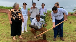 A prefeitura de Terra Boa inaugurou esta semana a praça Francisco Alves de Oliveira - Chiquinho da Toyota, no conjunto Nova Aliança. O prefeito Edmilson Moura discursou, é claro, e descerrou a placa de inauguração, mesmo com o tempo chuvoso. Mas não ficou só nisso, não. Também pegou no cabo da enxada e ajudou no plantio de uma árvore.