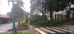 Ventania nesta segunda-feira derruba árvore na av. Manoel Mendes de Camargo, centro de Campo Mourão.