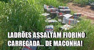 A Polícia Militar encontrou 710 kg de maconha, nesta quarta-feira, no distrito de Nova Brasília, em Araruna. Detalhe: a droga saiu de um Fiorino que tinha sido levado em assalto, pouco antes, na Estrada Boiadeira. Uma mulher dirigia o veículo com a maconha quando foi assaltada por homens num Corsa. E ela chamou a PM!