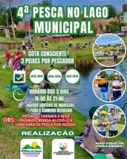 Altamira do Paraná - A prefeitura liberou a pesca no Lago Municipal até quarta-feira, das 16h às 21h. Só pode uma vara por pessoas e levar, no máximo, três peixes. É proibido o uso de bebidas alcoólicas.