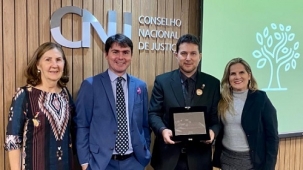 O juiz Maximiliano Deitos, que é natural de Campo Mourão, foi premiado nesta sexta-feira pelo Conselho Nacional de Justiça. A entrega do Prêmio Juízo Verde aconteceu em Brasília. Foi pelo projeto "Colhendo Sementes, Construindo Viveiros, Plantando Florestas", que Deitos criou e coordena na comarca de Ji-Paraná/RO. O projeto destina cargas de madeira apreendidas para construção de viveiros de mudas para áreas de reflorestamento.