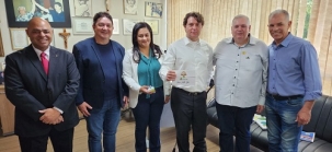 Presentes - Na hora da entrega do convite também estavam no gabinete do deputado o prefeito de Farol, Oclécio Meneses, e o ex-prefeito da cidade Gilmar Cardoso, que atualmente é assessor na Assembleia.