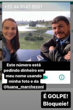O prefeito de Moreira Sales, Rafael Bolacha, publicou um alerta nesta quinta-feira. Motivo? Tem gente usando uma foto dele com a esposa para pedir dinheiro emprestado através do Whatsapp. O pedido, em nome do prefeito, é feito para os contatos dele no aplicativo. Em postagem. Bolacha mostra o número de telefone que pede o empréstimo e alerta: "É golpe! Bloqueie!"