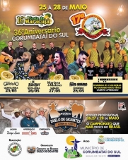 Saiu a programação para a festa pelos 36 anos de emancipação de Corumbataí do Sul. Será de 25 a 28 deste mês, com shows musicais todos os dias e rodeio a partir de sexta-feira, tudo com entrada franca. Também estão confirmadas a 16ª Festa do Maracujá e a 17ª Festa do Cabrito Apressado. O prato típico será servido no almoço de domingo, dia 28.