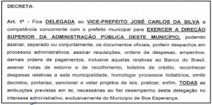 A partir desta segunda-feira o vice-prefeito Carlinhos Donato terá mais funções na prefeitura de Boa Esperança.