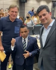 ...o "recepcionista oficial de Campo Mourão" vai até ele. O pré-candidato a presidente Sérgio Moro (Podemos) esteve nesta sexta-feira em Maringá e Magnum Alves foi até lá, com direito a vídeo com o ex-juiz e com o senador Álvaro Dias. Moro lembrou que já esteve com Magnum antes e que, inclusive, recebeu um desenho dele de presente. "Muito bem feito", frisou.