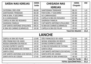 Serão percorridos 31,5 km entre 17 paróquias e capelas da cidade.