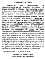 Sindicatos dos Empregados em Estabelecimentos de Serviços de Saúde de Campo Mourão e Região, em “Comunicado de greve”.