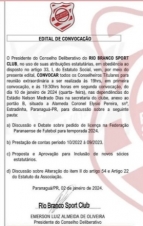 O Rio Branco, de Paranaguá, marcou assembleia para o próximo dia 10.