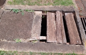 No final da av. Goioerê, sentido av. Miguel Luiz Pereira, a tampa de tábuas parece perigosa.