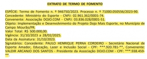 O Ministério do Esporte liberou R$ 500 mil para a Associação Dojo de Campo Mourão.