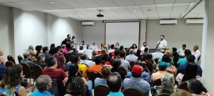 Edoel chegou, durante a fala, a convidar o advogado Cláudio Arruda para ser seu candidato a vice.