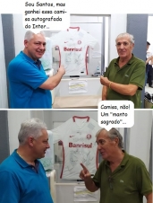 O médico, ex-vice-prefeito e ex-vereador Moacir Porciuncula, de Campo Mourão, visitou nesta sexta-feira o deputado Douglas Fabrício. O anfitrião, é claro, mostrou a ele a camisa autografada do Inter que ganhou quando era secretário de Estado do Esporte e Turismo. Douglas é santistas e Moacir colorado.