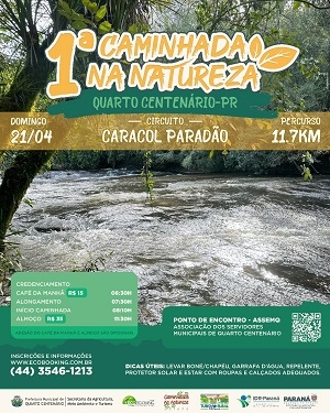 Acontece no próximo domingo (8h) a 1ª Caminhada Internacional na Natureza de Quarto Centenário.