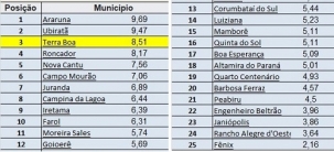 Lembra da avaliação da atuação governamental disponibilizada pelo portal do Tribunal de Contas do Estado? Boca Santa mostrou o desempenho regional em saúde, educação e transparência. Agora está aí o resultado em assistência social. Destaque para Araruna (9,69), Ubiratã (9,47) e Terra Boa (8,51). Campo Mourão ficou na sétima posição, com 7,06.