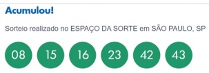 Ninguém acertou os seis números da Mega Sena sorteados neste sábado. Assim, o prêmio de R$ 28 milhões ficou acumulado para o próximo sorteio, que deve chegar a R$ 37 milhões. Já a quina teve muitos acertadores – 2.967 apostas – e cada uma vai levar R$ 1,8 mil. Teve, inclusive, apostador que passou raspando em Campo Mourão (aposta feita em canais eletrônicos), Corumbataí do Sul (lotérica Mega Show), Goioerê (duas apostas em canais eletrônicos), Iretama (lotérica Iretama), Mamborê (lotérica Mamborê) e Rancho Alegre do Oeste (lotérica Gralha Azul).